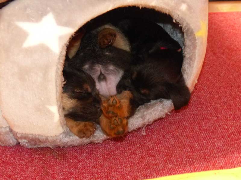 Am 18. Januar 2023 wurden Bercut for Borderranch und Isolde von den Moorgeistern Eltern von vier Welpen. Drei Jungs und ein Mädel.